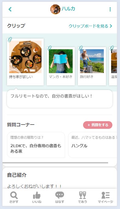 ▼プロフィールなどでお相手の理想の住まいが分かる