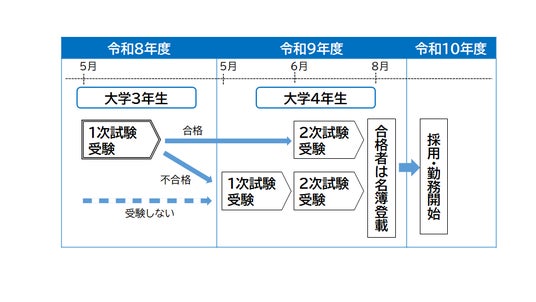 令和9年度採用選考試験(令和8年度実施)から、小学校・中学校教員志願者を対象に実施します。大学3年生から教員採用選考試験の一部が受験可能になります。