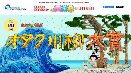 アイドル、コスプレ、アニメ、マンガ等にピッタリなドメイン「.moe」を運営する、インターネットサービスプロバイダーの株式会社インターリンク (東京都豊島区、代表取締役社長:横山正、以下インターリンク)は、「第20回 あなたが選ぶオタク川柳大賞」(以下、オタク川柳)の応募受付を、萌の日である10月10日午前11時より開始いたします。