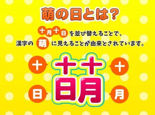 「十月十日」を並び替えることで、漢字の「萌」に見えることが由来とされています。インターリンクは、アニメ、コスプレ、マンガ、ゲーム、アイドル等のオタク専用新gTLD「.moe」の普及促進を目的として、一般社団法人日本記念日協会(※)に「十月十日 萌の日」を申請、2015年1月30日に登録されました。