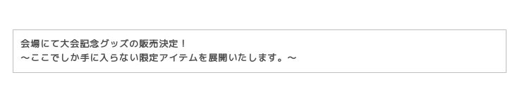 本大会を記念し、ソフトテニス、硬式テニス、バスケットボール、卓球、ハンドボールの大会会場にて大会記念グッズの販売を実施致します。