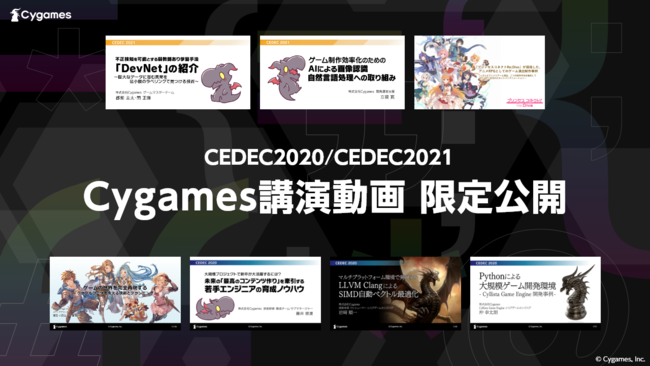ゲームの企画・開発・運営事業を展開する株式会社Cygames(以下サイゲームス、本社:東京都渋谷区、代表取締役社長:渡邊耕一)は、コンピュータエンターテインメントデベロッパーズカンファレンス2020(CEDEC2020)および2021(CEDEC2021)にて自社スタッフが実施した7つの講演を、公式YouTubeチャンネルにて期間限定で一般公開しました。また、公開した講演にちなんだ賞品が抽選で当たるTwitterフォロー&リツイートキャンペーンも同日から開催することをお知らせします。