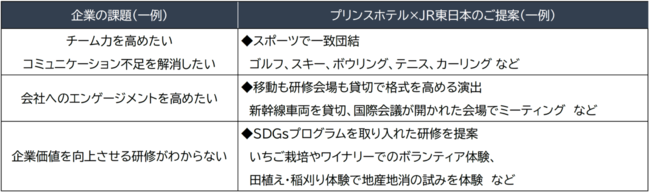 2023年度より企業の人的資本開示の義務化をはじめ、企業の「人への投資」が注目を集める一方で、コロナ禍による人材確保や人材不足に課題を感じる企業が増加しております。これを背景に、プリンスホテルとJR東日本は、両社のサービスや地域との連携を生かし、各企業の人材育成ニーズに柔軟に対応したワーケーションスタイルでの「チームビルディング研修」をご提供いたします。