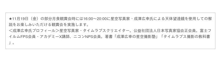 ダイヤモンド富士:11月13日(土)~11月19日(金)16:10~16:30頃 観賞可能予定 部分月食:11月19日(金)観賞可能予定