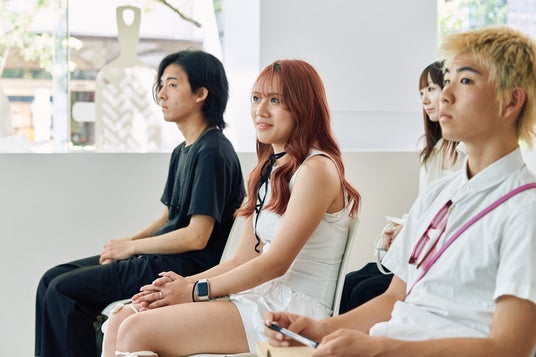 最優秀賞受賞者へ贈呈されるファッション研修についても伺い、昨年行ったことについて日爪さんからロンドンへ留学経験のある佐藤さんは、「ファッション業界の第一線で、プロフェッショナルなお仕事をしている方を間近で見ることは、学校で勉強することよりも何十倍も自分のためになると思うので、この研修は非常にいいものになると思います。」とコメントをいただきました。