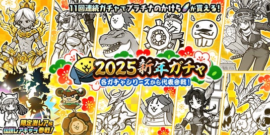 ポノス株式会社(本社:京都府京都市、代表取締役:辻子依旦、以下「ポノス」)が提供するスマートフォン向けゲームアプリ「にゃんこ大戦争」にて、期間限定レアガチャ「2025新年ガチャ」を2025年1月8日(水)11:00より開始いたしましたので、これをお知らせいたします。