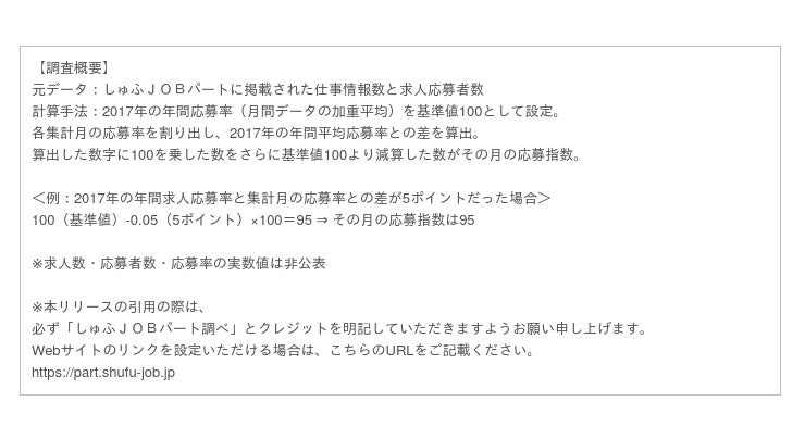 ビースタイル グループで主婦に特化した求人サイト『しゅふJOBパート』を運営する株式会社ビースタイル メディア(本社:東京都新宿区、代表取締役社長:小牟田斉美)は、掲載求人数と求職者数から算出した「主婦求人の応募指数」を集計しました。