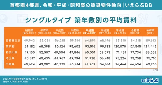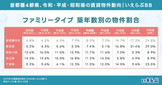 不動産業界のDXに取り組む株式会社いえらぶGROUP(本社:東京都新宿区、代表取締役:岩名泰介、以下「いえらぶGROUP」)は、不動産業者間流通プラットフォーム「いえらぶBB」のデータをもとに、2025年1月の東京都・神奈川県・埼玉県・千葉県における賃貸物件の市場動向を分析しました(※1)。