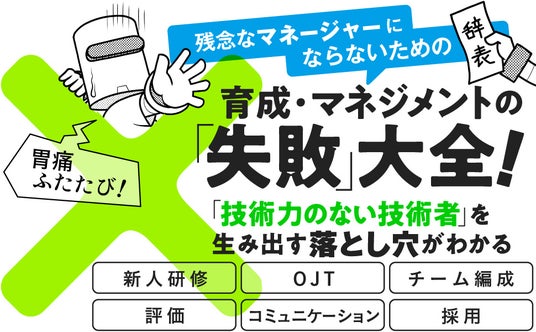 株式会社翔泳社(本社:東京都新宿区舟町5、社長:臼井かおる)は、書籍『エンジニア育成現場の「失敗」集めてみた。 42の失敗事例で学ぶマネジメントのうまい進めかた』を2025年6月11日に発売します。本書は、エンジニアの育成・マネジメントの現場で起こりがちな失敗エピソードを集めた事例集です。エピソードの数々を通して、失敗をどうすれば回避できるのかを解説します。