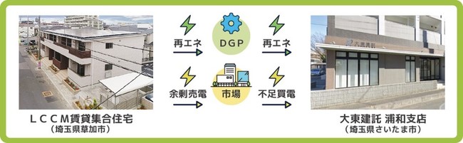 大東建託株式会社(本社:東京都港区、代表取締役社長:小林克満)は、4月1日より、LCCM賃貸集合住宅で創出した再生可能エネルギーを、デジタルグリッド株式会社が構築した相対(P2P)電力取引プラットフォーム「デジタルグリッドプラットフォーム(以下、DGP)」を活用し、当社の浦和支店(埼玉県さいたま市)に供給、自家消費する取り組みを開始します。