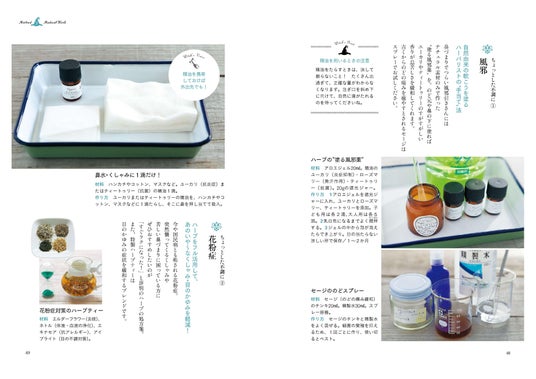 風邪や花粉症などのちょっとした不調、女性ホルモンの乱れや気鬱などの対策、さらに手指消毒液やマウスウォッシュなど、日々の暮らしに役立つハーブを解説