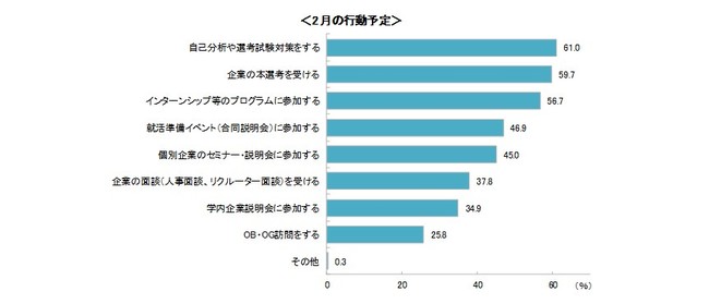 ○「自己分析や選考試験対策をする」が最多(61.0%)。