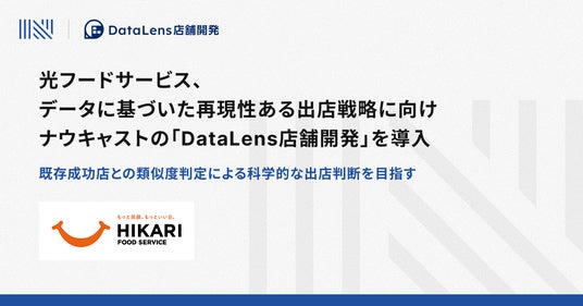 ナウキャストは今後も、人材情報などの社内データと「DataLens店舗開発」との連携を進め、光フードサービスが立地と人の両面から売上を科学し、最適な人材配置と出店戦略を実現することを支援してまいります。