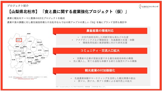 2025年7月より山梨県北杜市で開始される「食と農に関する産業強化プロジェクト(仮)」に対して、株式会社MacbeePlanet(代表取締役社長:千葉 知裕、本社:東京都渋谷区、証券コード:7095)のグループ各社より「地方創生応援税制(企業版ふるさと納税)」を通してご支援をいただきました。