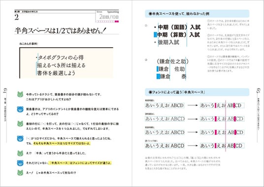 プロの現場では、「ベタ組み」と「スペーシング」を理解することが必須。調整のコツや使い分けの判断について学びます。「文字の大きさとアキ量」「半角スペースは1/2ではありません」「全角/半角の使い分け」など、プロでもあやふやになりがちな知識も改めて整理できます。