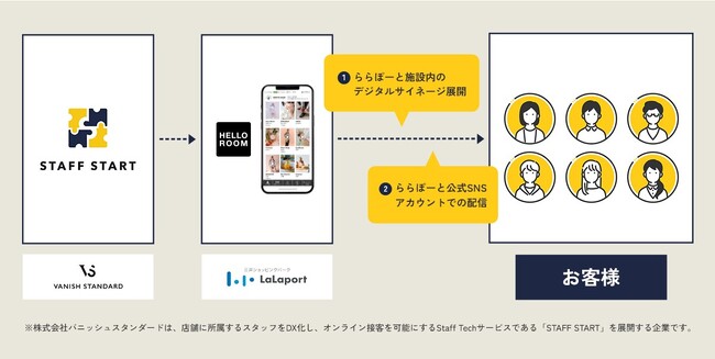 三井不動産商業マネジメント株式会社(所在:東京都中央区 代表取締役社長 大林修)は、2024年3月より「HELLO ROOM」で使用しているシステムを株式会社バニッシュ・スタンダード(所在:東京都渋谷区 代表取締役/CEO 小野里 寧晃)が提供するスタッフDXのアプリケーションサービス「STAFF START」にリニューアルいたしました。