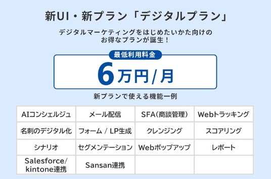 このたび、製品リニューアルに続く次なるステップとして、これから本格的にデジタルマーケティングに取り組む企業様が、より手軽に、かつ最適な環境でスタートを切れるよう、従来のMAプランを見直した新体系「デジタルプラン」をリリースいたします。
