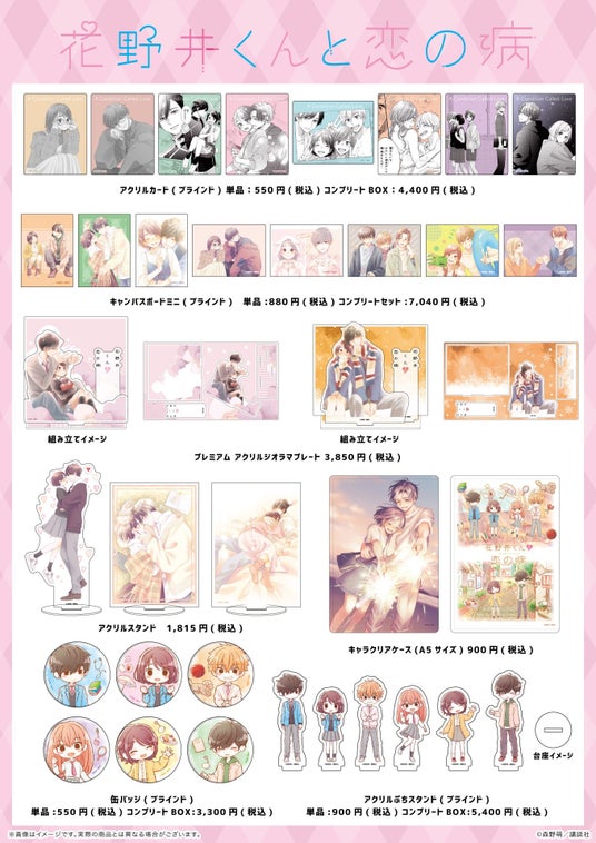 株式会社A3は、森野萌先生による人気漫画『花野井くんと恋の病』の新作グッズを販売いたします。