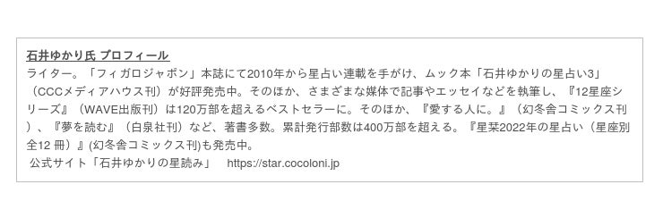 石井ゆかり氏と、「石井ゆかりの星占い」が12年目となる雑誌「フィガロジャポン」の担当編集者・青木良文氏によるインスタライブ。普段はなかなか聞けないお2人の貴重なお話をお届けします。(※石井ゆかり氏は声のみの出演)