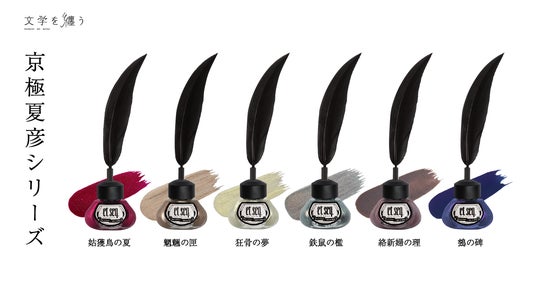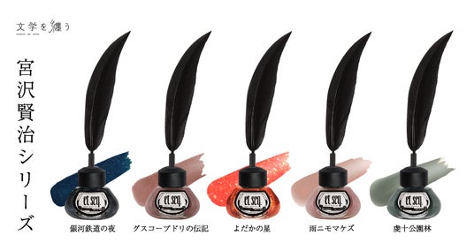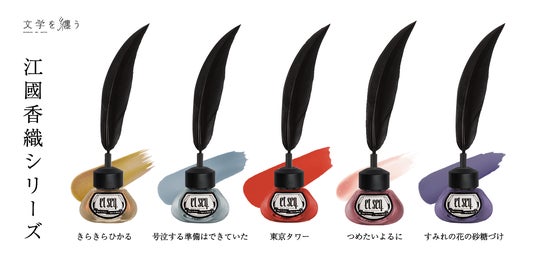 日本の文学作品の印象的なフレーズや登場人物の言葉などに着想を得て、その作品を色・質感と言葉で表現したネイルポリッシュです。羽根ペンをかたどったブラシとインク瓶のようなボトルデザインで、まるで言葉を書き記すように、指先を彩ることができます。