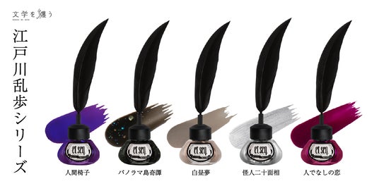 「文具女子博2023」「文具女子博2024」に続き3度目の出店となる今回は、2025年5月2日(金)に発売した「江戸川乱歩」シリーズ全5色を含む、台湾のネイルブランド「et seq.」との共同制作による羽根ペンネイルポリッシュ6シリーズ(全31商品)を販売します。