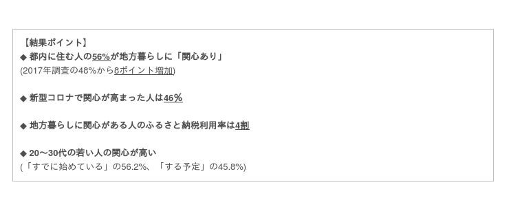 1. 56%が地方暮らしに「関心あり」、 46%は新型コロナで関心高まる