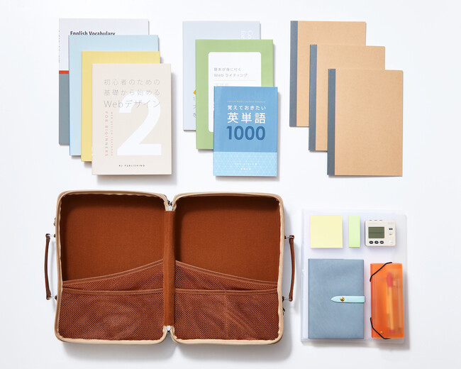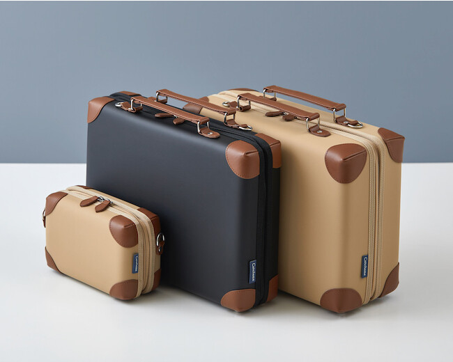 『カルシェット』は、教材やガジェット類をまとめて収納でき、楽に持ち運びができるキャリングケース・ポーチシリーズです。開いてすぐに作業ができ、学校や自習室、図書館、コワーキングスペースなど、さまざまなシーンでお使いいただけます。耐久性のあるハード素材(EVA)を使用しているため、収納物を汚れや衝撃からしっかりと守ります。今回はケースタイプ2サイズとポーチタイプの計3種類を発売します。3種類ともショルダーベルト(ケースタイプのみ肩当て付き)が付属しているため、重い荷物も楽に持ち運びができます。カラーはベージュとブラックの2色で、シンプルなデザインのため普段使いのバッグとしてもおすすめです。