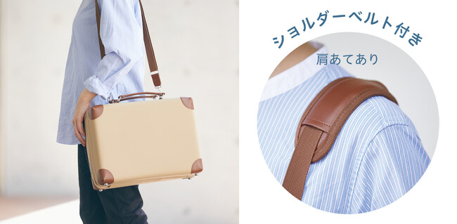 長さ調整可能なショルダーベルトが付属しており、持ち運びにも便利です。ケースタイプには肩当ても付いています。