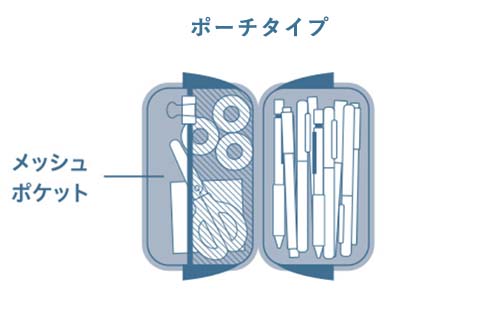 ポーチタイプには片側に小物が入るメッシュポケットが付いています。
