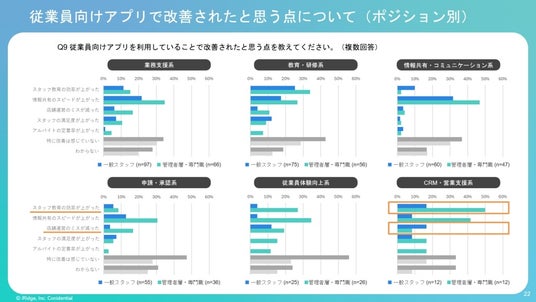 - 従業員向けアプリで改善されたと思う点(全体・ポジション別)