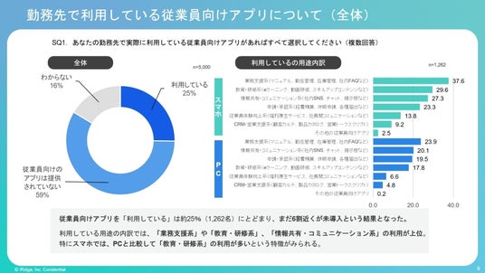 ・従業員向けアプリを利用しているのは約25%にとどまり、まだ6割近くは未導入という結果となった