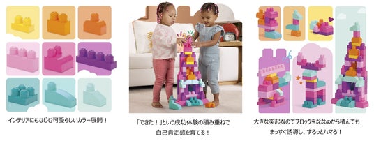 MEGA(TM)は、アメリカNo.1の幼児向けブロックの売り上げを誇るブロック玩具ブランド*です。その歴史は35年以上前、1才からでも遊べる”幼児向け”に特化したブロック玩具を、世界で初めて開発したことから始まります。小さな手でも遊びやすいようにと考えて設計された、特別大きいサイズのブロック”MEGA(R)BLOCKS(メガブロック)”は、私たちの最もアイコニックな商品として世界中で愛されています。”MEGA(R)BLOCKS(メガブロック)”の登場により、知育玩具として注目の集まるブロック遊びは、より早期から楽しめるものへと変わりました。