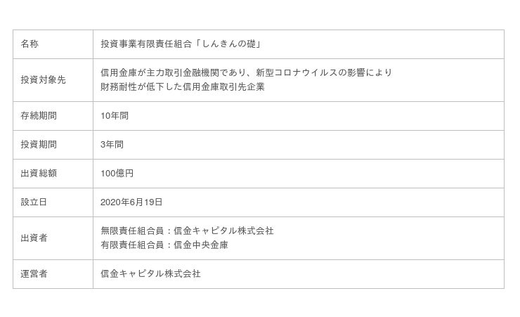 今般、信金中金及び信金キャピタルが、業績は堅調であったにもかかわらず、新型コロナウイルスの影響で財務耐性低下を余儀なくされた信用金庫取引先に、資本性資金を供給するファンド「しんきんの礎」を設立したことを受け、中小機構は、当該ファンド投資先企業の経営の改善に向け、ハンズオン支援等を提供します(別添スキーム図参照)。