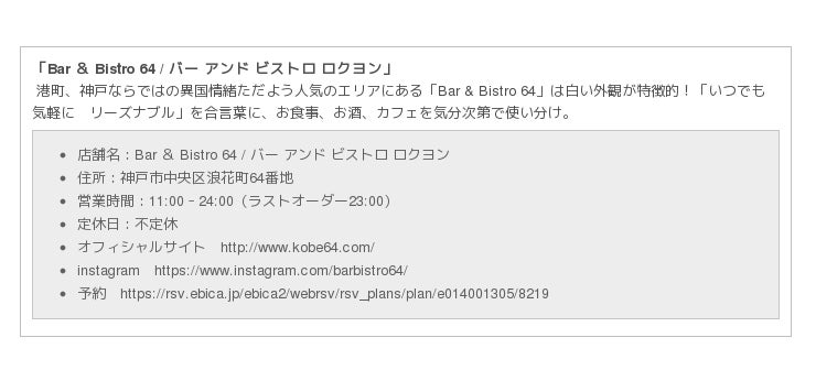 この機会にぜひ、「Bar & Bistro 64」へご来店ください。
