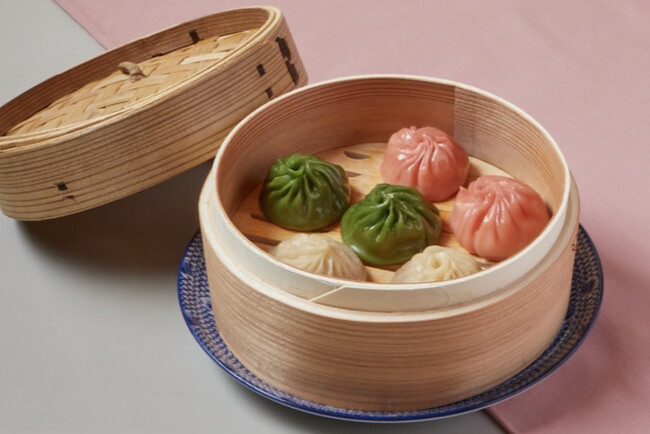 ・桜エビ風味と出汁が効いた小籠包・海鮮の香りが香ばしい海鮮の小籠包などお花見に合わせた3色お花見小籠包!