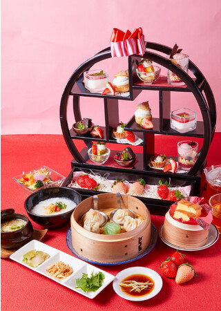 [「国産苺3種食べ比べ」と「点心5種食べ比べ」のチャイニーズアフタヌーンティーが付いた「小籠包と美人粥のアフタヌーンティー「楊貴妃コース」]