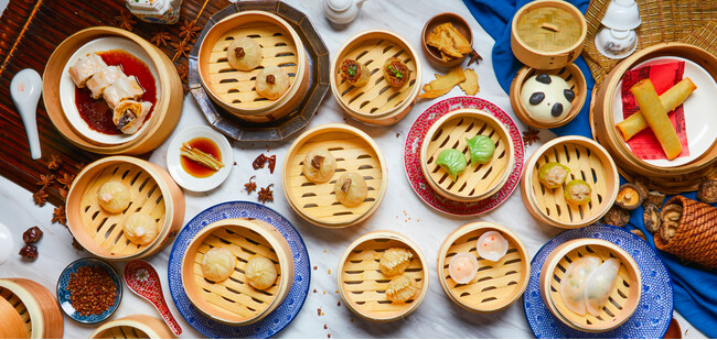 海鮮と湯葉のクレープ包みや春筍をふんだんに使用したチマキなどここでしか食べれない点心を15種類堪能して頂けます。