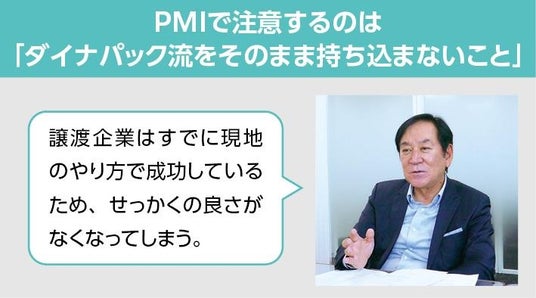 PMI(M&A後の統合プロセス)においては、「ダイナパック流をそのまま持ち込まない」ことを重視し、譲渡企業が築いてきた現地のやり方や強みを尊重する姿勢を貫いています。