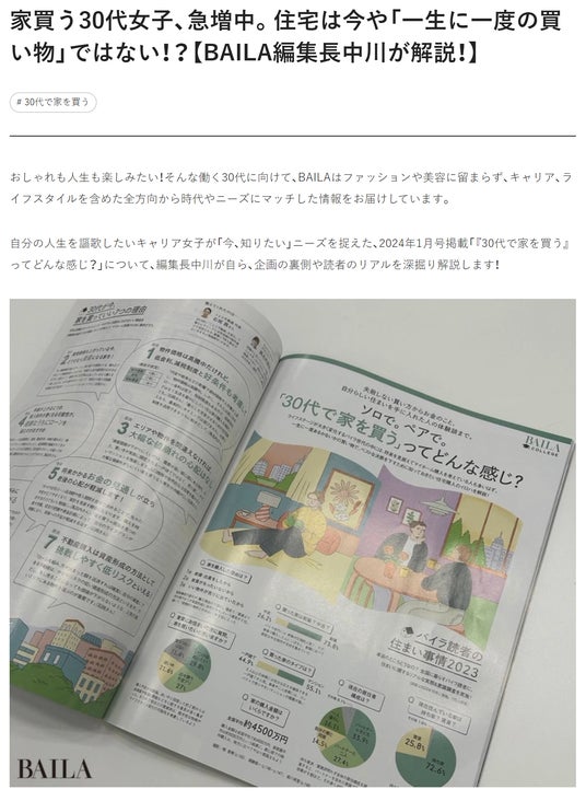 「BAILA」は、読者に対して毎月行っているアンケート調査やヒアリングから、彼女たちの「知りたい」に寄り添うライフスタイル企画を毎号掲載し、好評を博しています。