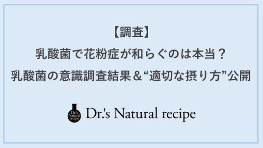 乳酸菌とは、腸内で悪玉菌の繁殖を抑え、腸内環境を整える機能をもつ、発酵によって糖から乳酸をつくる嫌気性の微生物の総称のことをいいます。また、人体に有益な菌であることから「善玉菌」とも呼ばれており、主にヨーグルトやチーズなどの発酵食品に含まれていることが多いです。 風邪やインフルエンザが流行しやすい冬に乳酸菌を“免疫ケア”として摂取する人も増えてきましたが、近年はさらに、「乳酸菌が花粉症の症状を緩和する」と注目され始めています。そこで今回「ドクターズナチュラルレシピ」は、花粉の飛散が本格化するこの時期を踏まえ、実態調査に加え「乳酸菌と花粉症の関連性」や「適切に効果を感じるための手引き」について専門家に話を伺いました。