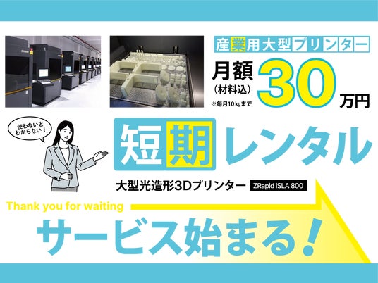 - 本体価格 約2千万円の産業用大型3Dプリンターを月額30万円でレンタル