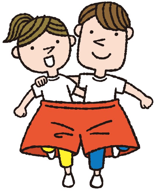 1チーム4名、2人1組でペアを組み、でかパンツを履いて走るリレー!でかパンツの片足に1人ずつ入り、ペアで肩を組んで一緒に走ります。