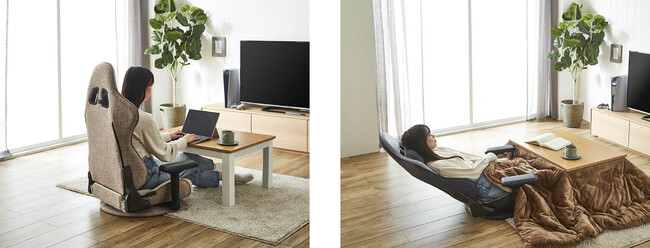 また、HEIMISHシリーズは、ローテーブルやコタツでも蒸れずに快適に過ごせるファブリック生地の低座面タイプ。厚さ12cmの座面クッションで長時間座っても快適です。