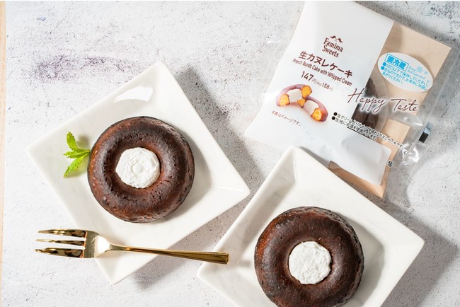カヌレへの注目が高まる中、ファミリーマートでも、カヌレにアレンジを加えた進化系カヌレ「生カヌレケーキ」を発売いたします。フランス産発酵バター入りマーガリンに加え、ラム酒とバニラオイルを配合した生地をじっくり焼き上げました。カヌレの特長であるカリッとした外側、もっちりとした内側の食感を実現しています。中心に絞ったホイップクリームはミルク感のある濃厚な味わいで、リッチなカヌレ生地と相性抜群です。