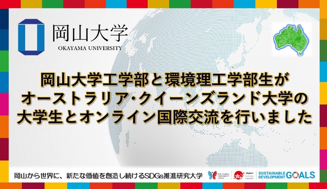 国立大学法人岡山大学(本部:岡山市北区、学長:槇野博史)工学部は2022年3月3~4日、オーストラリア・クイーンズランド大学の学生と英語によるオンラインでの国際交流を実施しました。