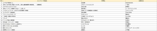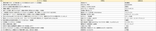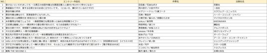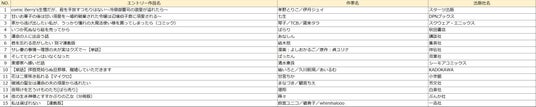 部門 : 男性部門、女性部門、異世界部門、ラノベ部門、BL部門、TL部門