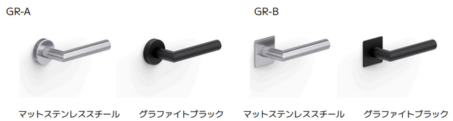 今回追加するGriffwerk社のハンドルデザインは、台座が丸形の「GR-A」と四角形の「GR-B」の2タイプで、カラーは「マットステンレススチール」と「グラファイトブラック」の2色です。