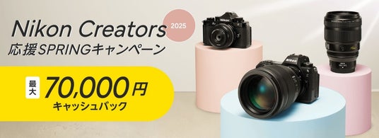 株式会社ニコンの子会社、株式会社ニコンイメージングジャパンは、2025年2月14日(金)~5月7日(水)の期間中に、対象製品をご購入のうえ、所定の応募用紙に必要書類を揃えて応募された方全員にキャッシュバックする「Nikon Creators 応援 スプリングキャンペーン2025」を実施いたします。