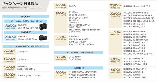 - ニコン春のキャッシュバックキャンペーンはZ6IIIからZf、Z30まで豊富な対象製品をラインナップ! -