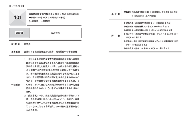 判決文を読むことなく、労働事件の慰謝料認定額とその判決要旨をすぐに確認することができます。前回版から約100の判例を更新した充実の内容!